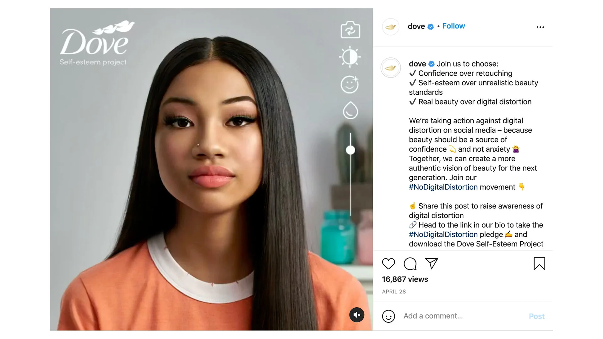 Developed the digital portion of the Dove Self-Esteem Project’s #NoDigitalDistortion campaign to address the harmful impact of social media on girls’ self-esteem. Executed social content, a campaign site, targeted display ads, and an unfiltered lens, and delivered the work to local markets via a 100+ page digital toolkit outlining creative specs and guidelines. The campaign drove a +2650% increase in toolkit downloads in its first week, generated 6 billion earned impressions globally, and achieved 99% positive sentiment, laying the foundation for the award-winning Reverse Selfie video.